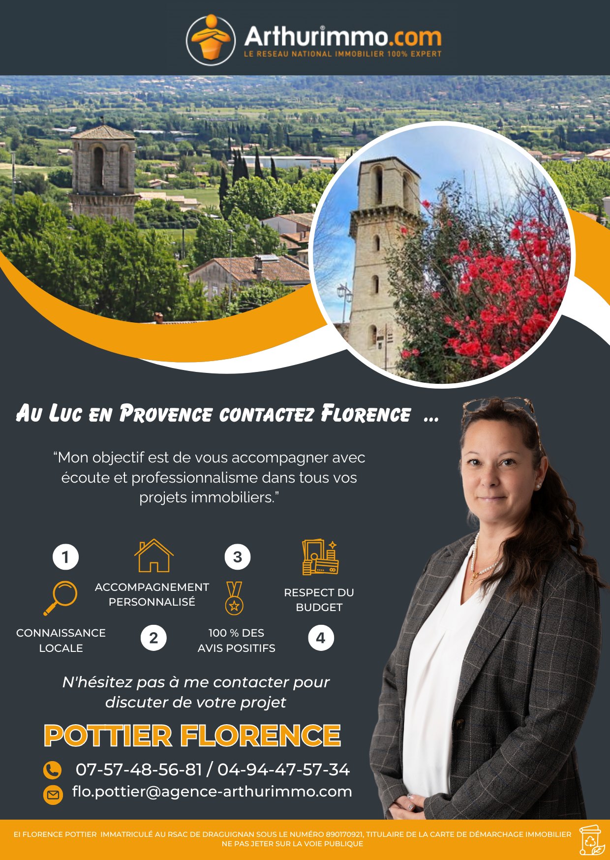 Agence immobilière Le Luc - Conseillère Arthurimmo Flo Pottier. Transaction, vente, avis gratuit. Expert terrain & réseaux sociaux.